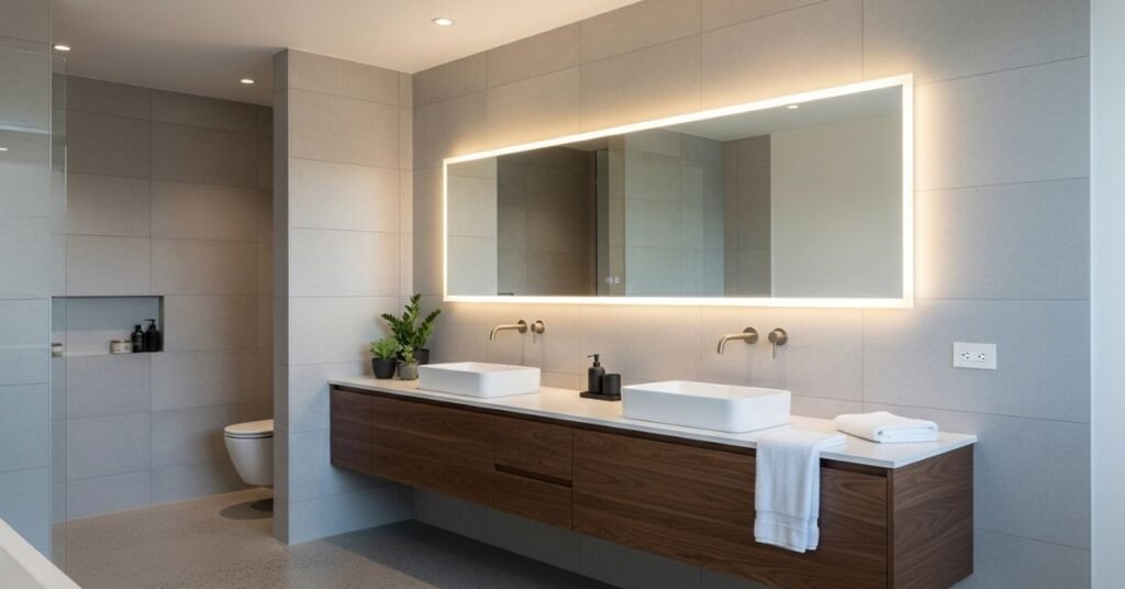 Larger mirrors reflect more light, giving the illusion of a spacious, airy bathroom. It’s one of the simplest tricks designers use to create expensive-looking interiors.